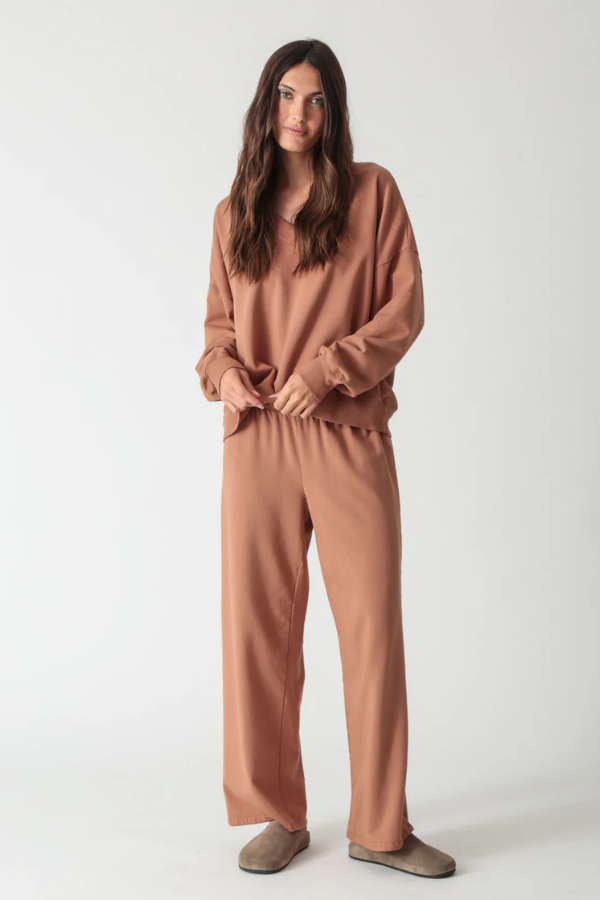 The Wylie is the perfect straight leg pant that will keep you comfortable and cute all day. Hand dyed with love in Los Angeles. Pair it with the Ava Sweatshirt to complete the look.