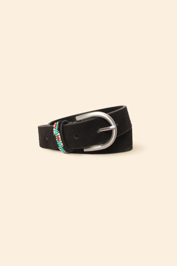 Buckle up. Made in 100% leather, Brix is an adjustable belt with a brushed silver buckle closure and beaded belt loop.